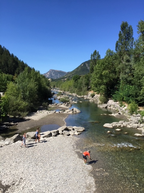 We planned a route and headed up into the mountains. Our first stop was a town called Castellane. We arrived mid morning so had to eat our lunch although the bread we had bought was really tough. There were kids playing in the river and we thought it would be lovely to come back and spend some more time here.