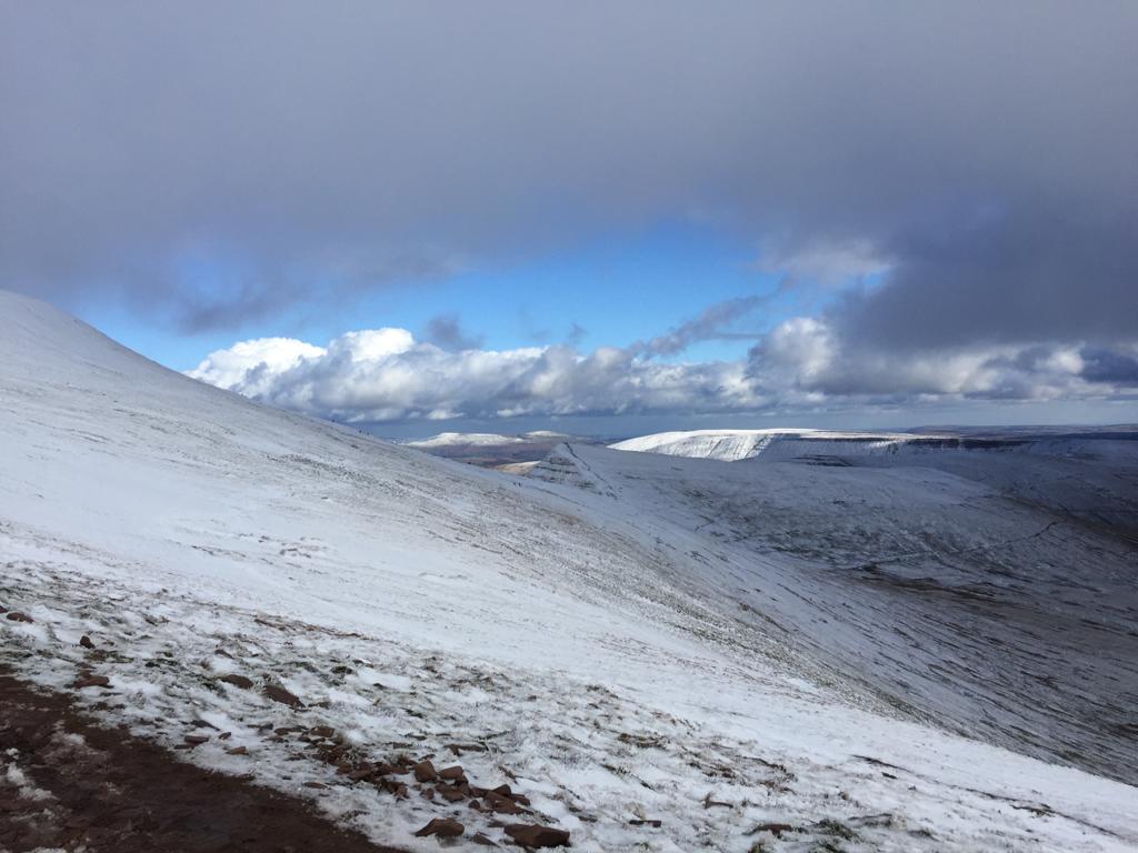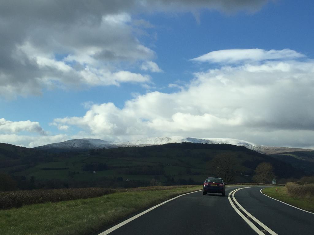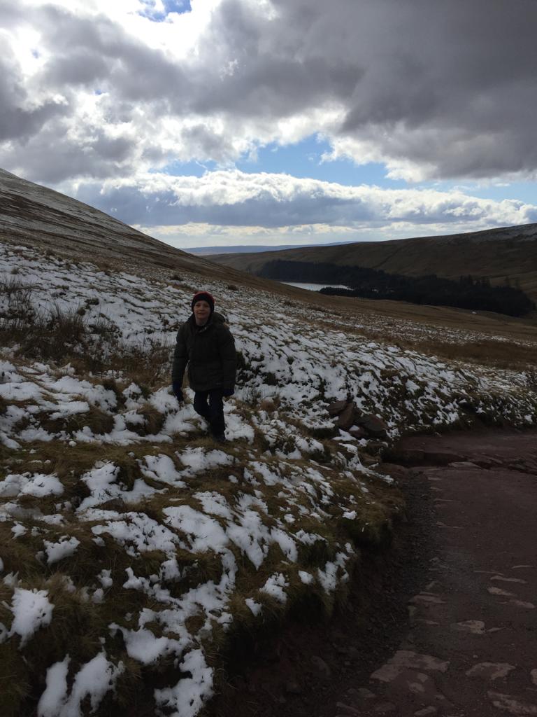 Stuart researched a route, we were pretty well kitted out with walking clothes, boots etc so left home in the morning with a plan to arrive just before lunch. As we drove towards the Brecon Beacons we could see that they had snow on top of them which was rather exciting.