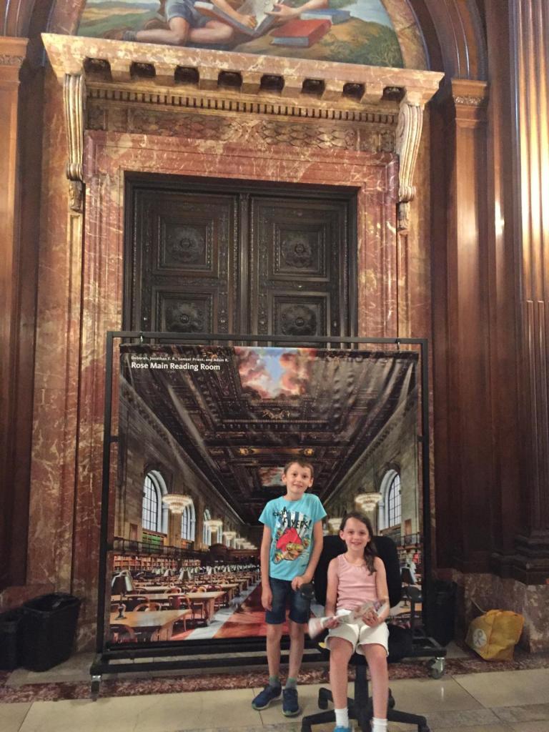 We began by visiting the Ghostbusters firehouse. Unfortunately the building was being renovated but we did see the Ghostbusters mural on the ground. We wandered to Bryant Park where Tom and Izzy ordered chocolate waffles for lunch and then visited the public Library. We wanted to see the Rose Room but it was closed.