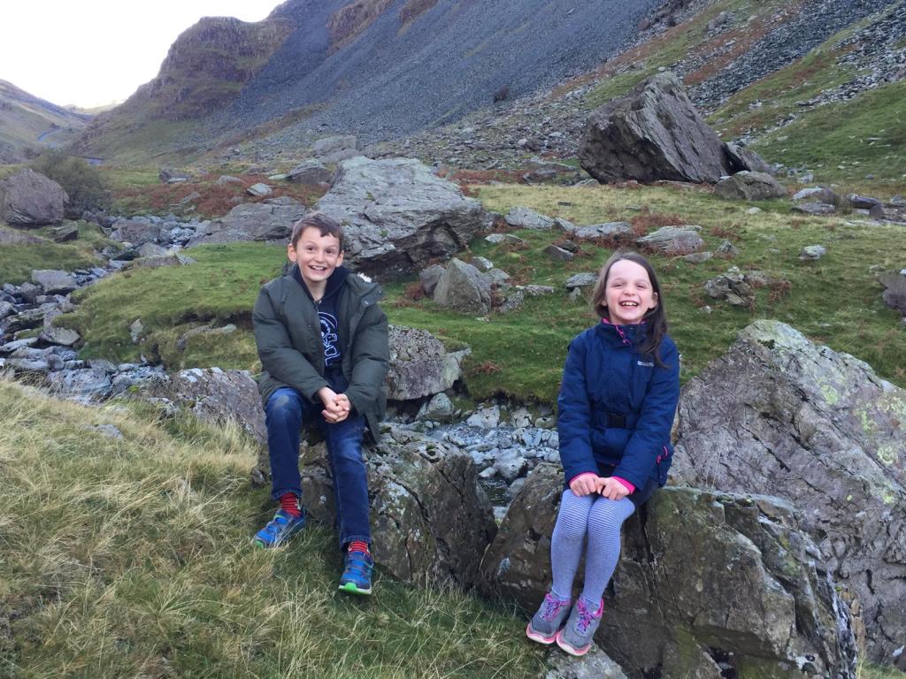 We drove home via the Honister Pass where we stopped for a bit and let Tom and Izzy explore the stream.