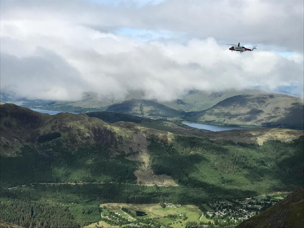 As we were approaching the cloud line at about 1000 meters someone on the path ahead of us hurt themselves so the mountain rescue helicopter came in and airlifted them off the mountain.