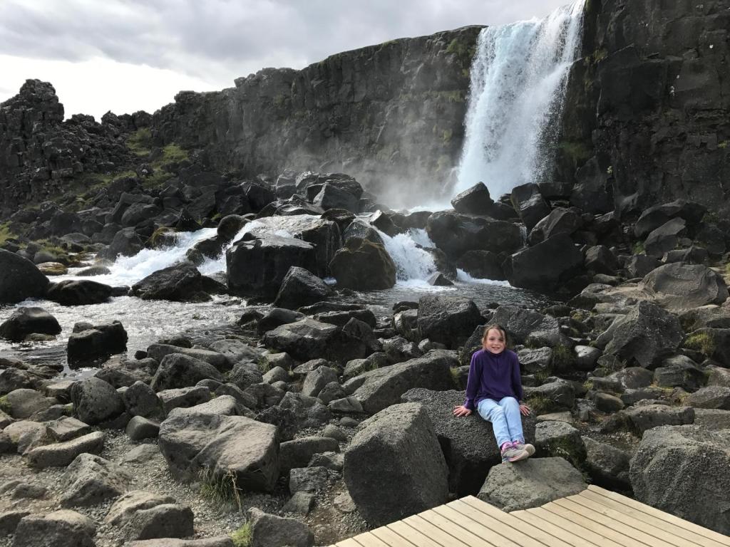 We did a short walk to a waterfall – Oxararfoss – where we walked between the plates to reach it.