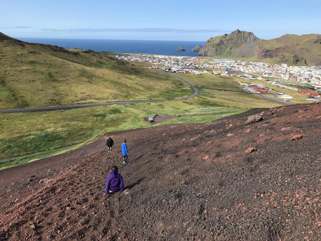 The first thing we wanted to do was to climb Eldfell – the volcano which erupted in 1973 and almost destroyed the harbour. It was quite a difficult climb as the ground was full of loose rocks and stones.