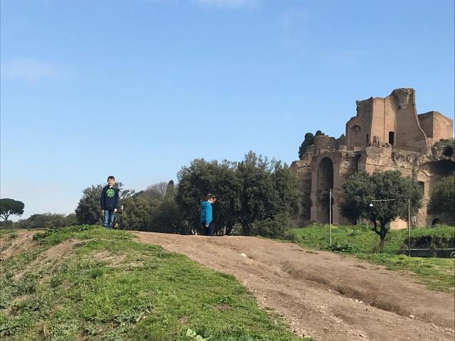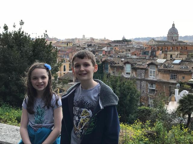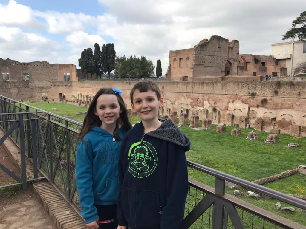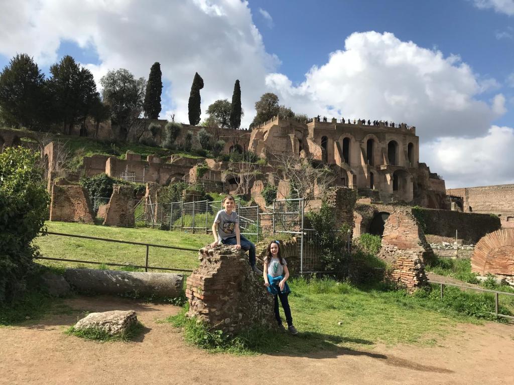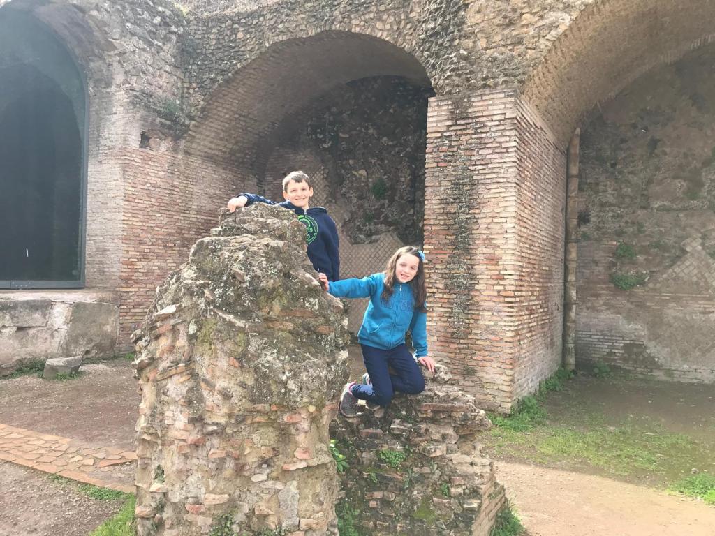 Our next stop was Palatine Hill where we explored the ruins. Tom and Izzy really enjoyed playing on some of the rocks and pretending to be statues. It was also starting to get quite hot which we had not expected as we had left a rainy England the previous day.