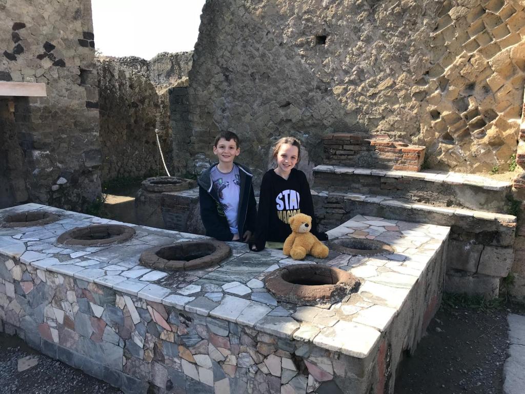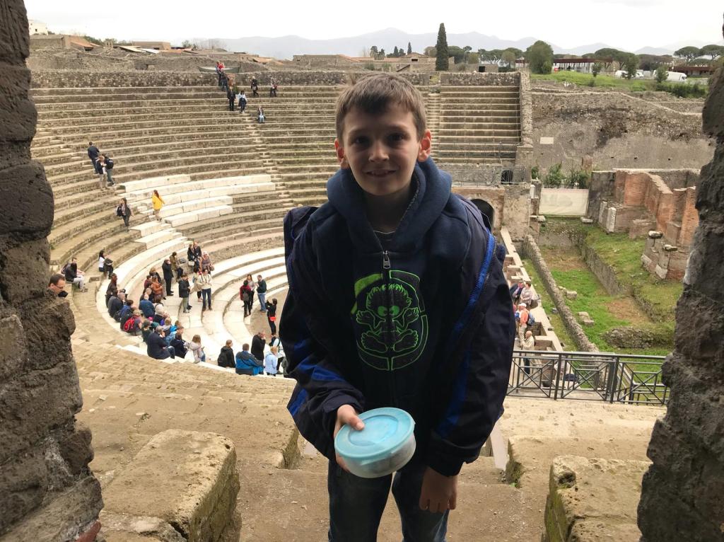 We chose to visit Pompei as Tom was learning Latin at school and he had been studying some of the buildings and people wo had lived there. The first place we stopped at was the massive amphitheater where we also found a geocache.