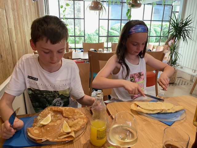 We found a lovely creperie (Creperie La Tourelle) where the kids were not at all adventurous with Tom having Crepes with lemon & sugar and Izzy having one with Nutella. I went for a savoury Galette – can’t go wrong with pancakes stuffed with potatoes, cheese and mushrooms!