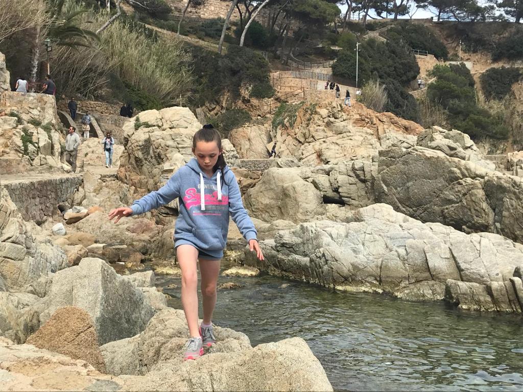 We then worked our way down the coast to Llaret de Mar. We had watched a tv program about the town and how it was a ‘party’ town and did not have high expectations. However – we found a beautiful walk way which hugged the coastline to the north of the town and some rocks to play on to the south. We really enjoyed our time there.