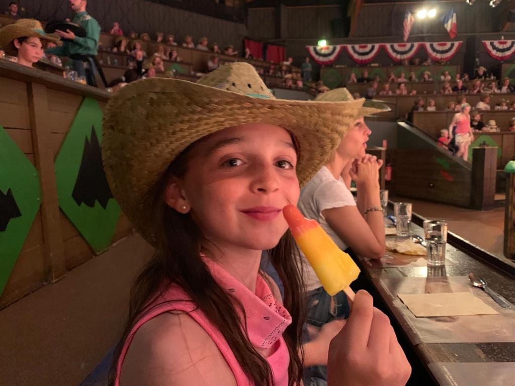 They absolutely loved the show – you can’t go wrong with horses, cowboys and Micky Mouse. It was just really good fun and they just got really into the audience participation. A lot of people moan about the food that is served but actually I thought it was really good. Chilli, corn bread, chicken, sausages, potatoes, ice cream and beer! The only grumble I had was from Izzy who as she’s 11 was on a children’s ticket so had to have a kids meal!