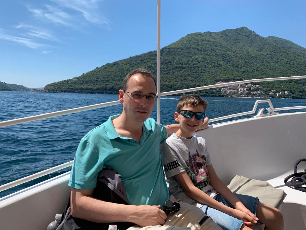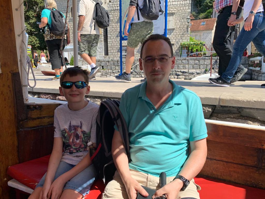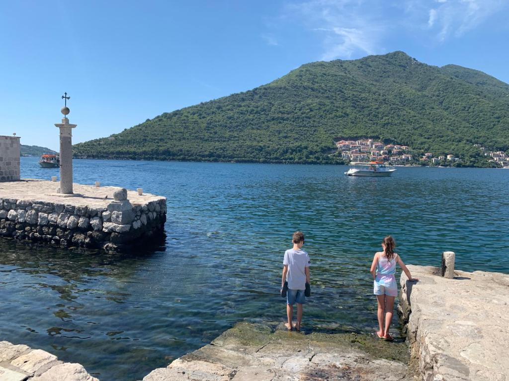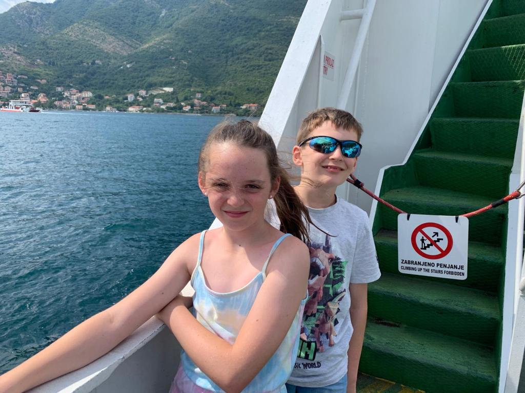 As lots of tour coaches visit our aim had been to beat the tours. – and luckily we did. We found our Geo-Cache, Tom and Izzy had an argument about who got to hold it for the photo and then we returned to Perast where we had ice cream.