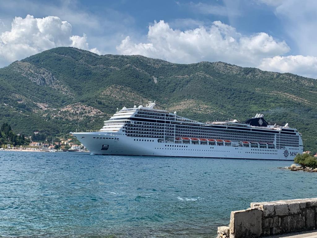 We carried on driving around the Bay until we reached Kotor (a UNESCO site) We parked in a huge car park and walked towards the walled town. There was a massive cruise ship in the harbour which we found fascinating. We’ve never been on a cruise and have never even stood by a cruise ship so were just taken back by how big it was.