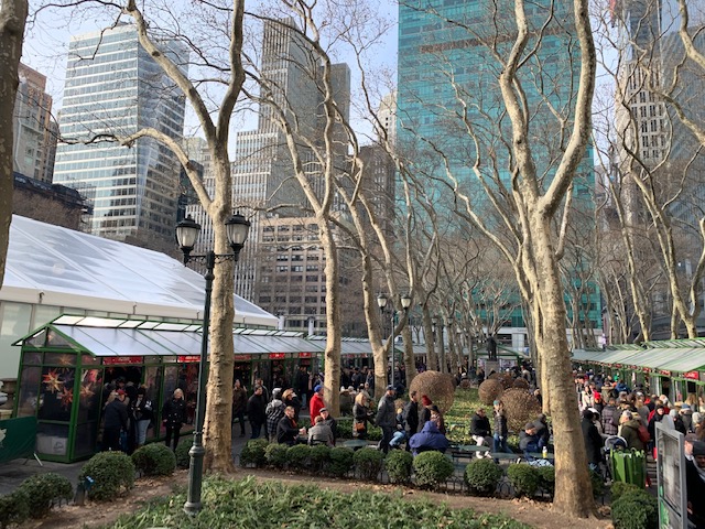 After a 10 minute rest we headed out to our first destination – Bryant Park. A friend had recommended we visit their Winter Village. It was just over 5 minutes from the hotel and it was full of stores selling Christmas gifts and food stands.