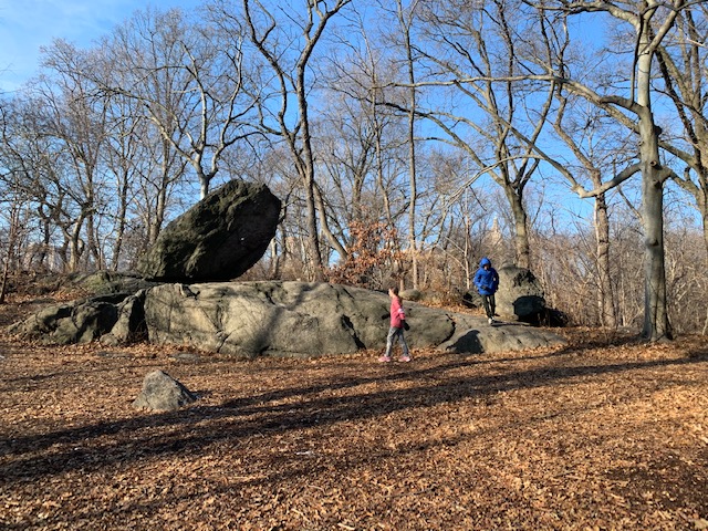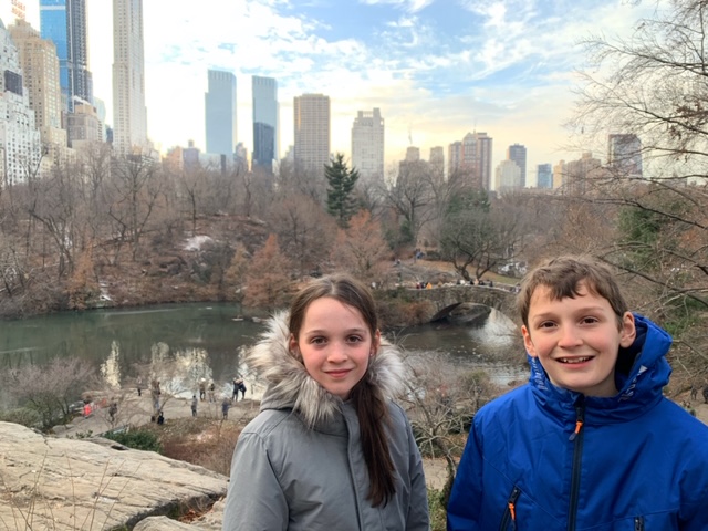 By this time it was about 3pm and we really wanted to stay out until dark to see the Christmas lights, so we needed something to do for a couple of hours before tea. We decided to wander down to Central Park for a walk. We climbed on one of the rocks which gave a great view of the Manhattan Skyline.
