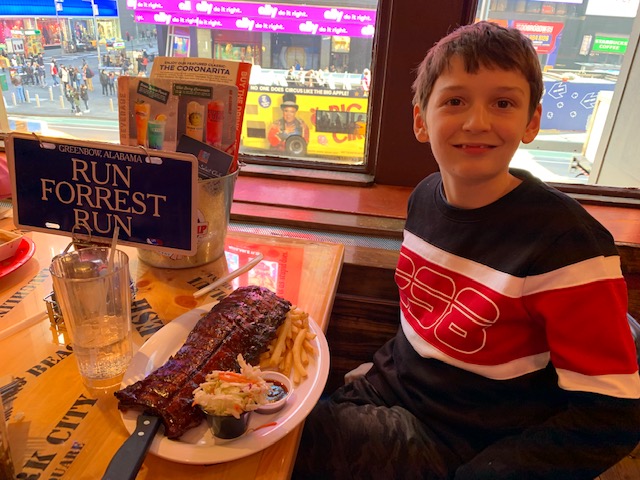 We walked from the reservoir to the 59th Street exit. We decided to go to Bubba Gumps for lunch at Times Square but on leaving the park had to take a diversion as the police had closed the roads. Ice had formed at the top of some of the tall buildings overnight and it was falling off onto the paths below. You could actually see the huge chunks of ice falling down.