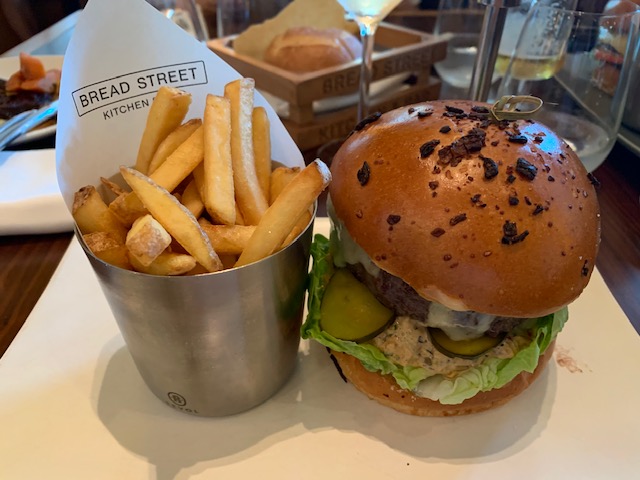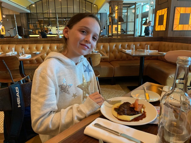 We had a wander and there was a ‘Gordon Ramsey Bread Street Kitchen and Bar’. The menu looked good with food the kids would eat so we went in. Stu and I both ate off the set lunch menu – and that meant we got a glass of wine (although Stu had a beer) – our first alcohol since leaving England as our hotel in Abu Dhabi was dry.