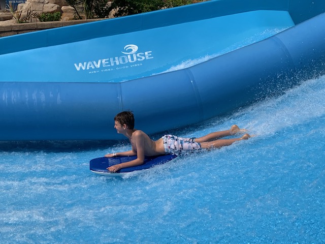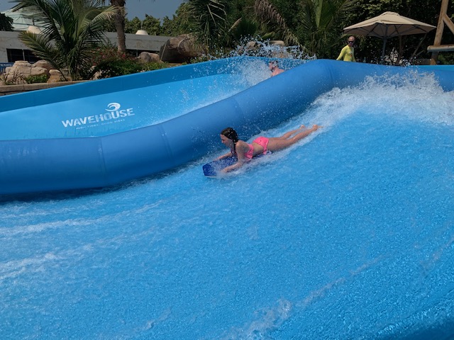 We were able to leave all our cases in the business area of the hotel which also had showers and bathrooms. The park was quiet so we revisited all the slides from the previous day and the kids had a go in the surf pool which looked hard work but really good fun. If they fell off the body boards the force of the water would send them flying right to the top of the slope!