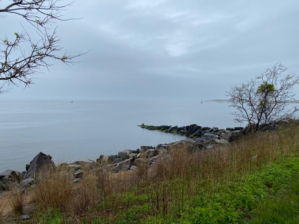 We reached the top of Sandy Hook and cycled past the chapel and the batteries and looped back towards the car park. At which point the drizzle turned to torrential rain again.