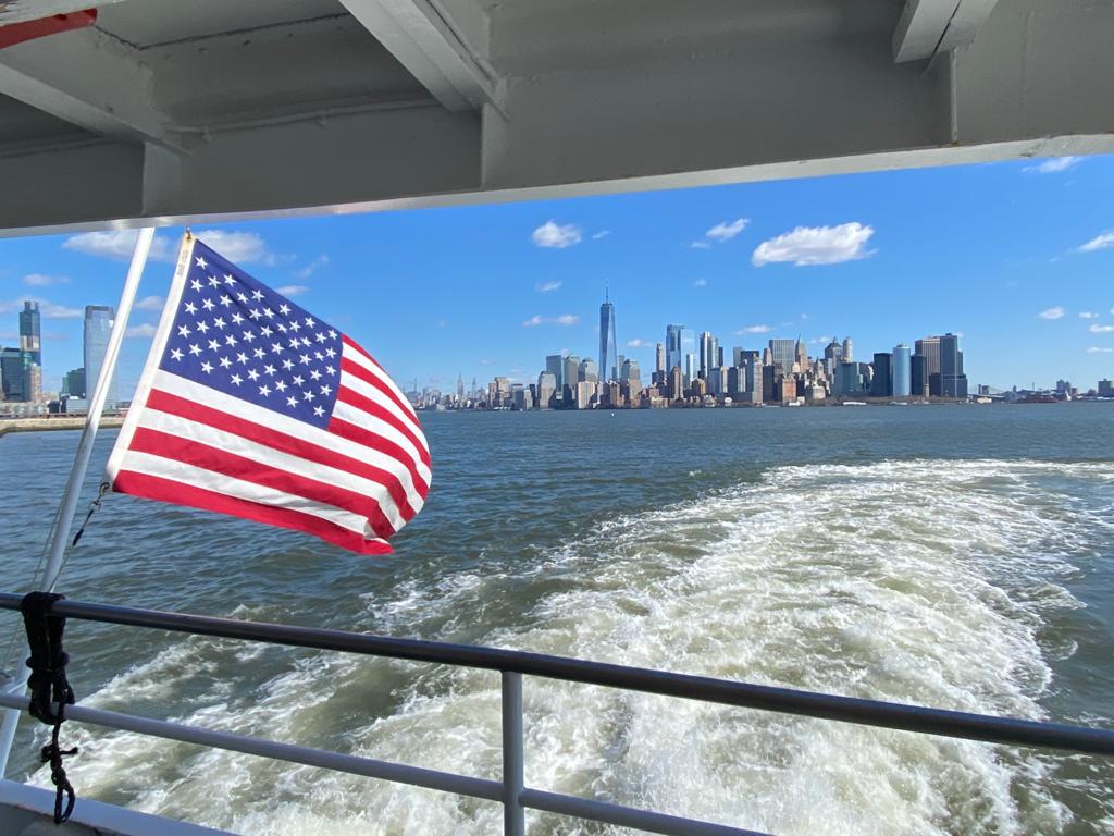 We then boarded another ferry to get to the Statue of Liberty. We played around on deck for a bit trying to take some cool photos of the American Flag with Manhattan in the background before having to go back inside due to the cold.