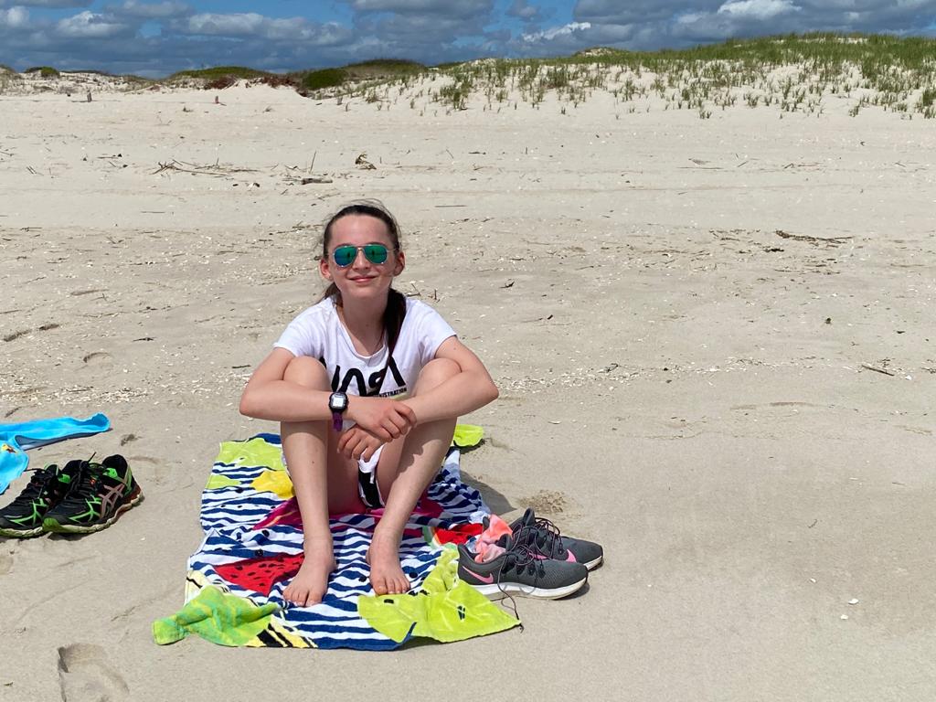 There was no life guard on duty so swimming was not allowed – however the waves did look pretty rough. We did have a paddle and despite the heat the water was icy cold so there was no way we could have gone any deeper than our feet!