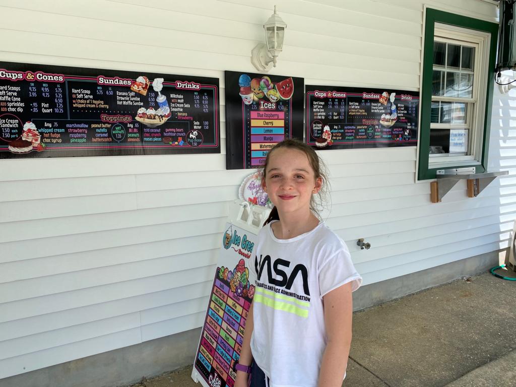 We sat on the beach for 10 minutes then cycled back to the car. In total we cycled 16km . We headed for home stopping off at an ice cream shop in Seaside Park. Stu, Tom and Izzy had ice cream sundaes whilst I had an ice cream soda.