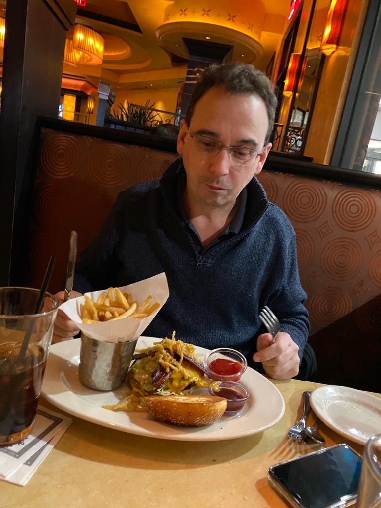 Unfortunately we ended up on a road with no restaurants/service stations so by 8.30pm we were very hungry! We were within 15 minutes of the hotel and google maps showed there was a Cheesecake factory nearby – how convenient – so that is where we headed. Stu had his favourite BBQ burger whilst I opted for the Cajun chicken strips, mashed potatoes and corn salsa (aiming to try something new each time we visit). They were lovely but the portion was huge – could have fed all 4 of us had the kids been with us!