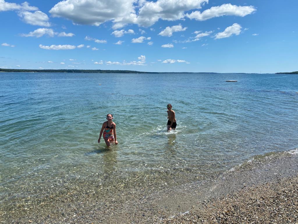 Next we drove to Owls Head Lighthouse. We had to follow a short forest trail to reach it and then you could walk up the stairs to the lighthouse. It wasn’t the easiest lighthouse to get a good picture of. However, there was another trail which led to the beach so the kids got to have a paddle before we carried on our journey.