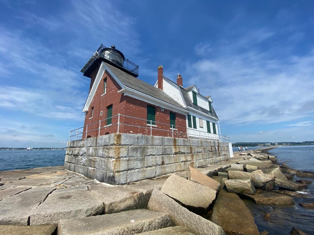Today we had to make our way to Boston visiting lighthouses on route. Our first stop of the morning was Rockland Lighthouse. This lighthouse was at the end of a granite breakwater about 1km long. There was also a geo-cache for us to find. It was quite difficult walking along the breakwater because it was made up of blocks and if you looked down when you walked you could get quite dizzy.