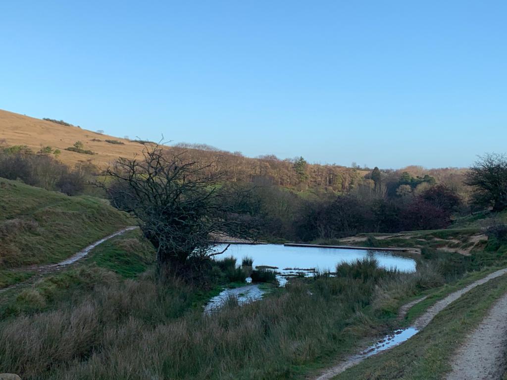 Eventually we reached the little lake which we needed to cross to then head up through the valley to make our way up to the common.