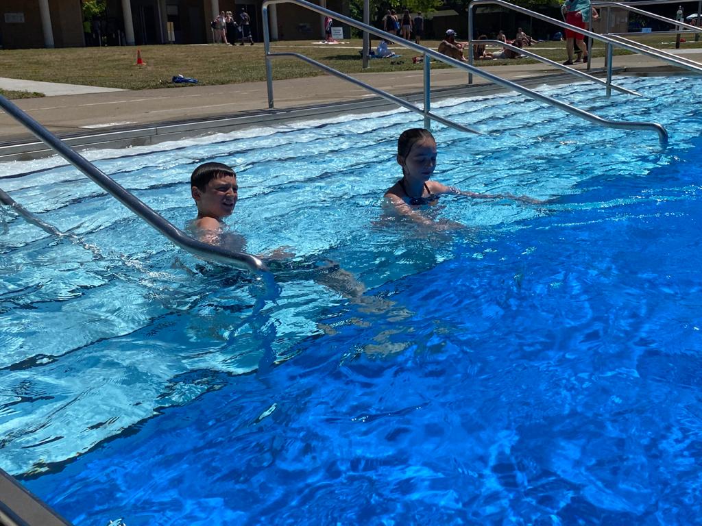 It was only 15 minutes away and when we arrived we found out that there was an outdoor swimming pool and as we had all the swimming kit in the car we let Tom and Izzy go to the pool (once I had a look at the lake!) At the lake you could just see Toronto in the distance.