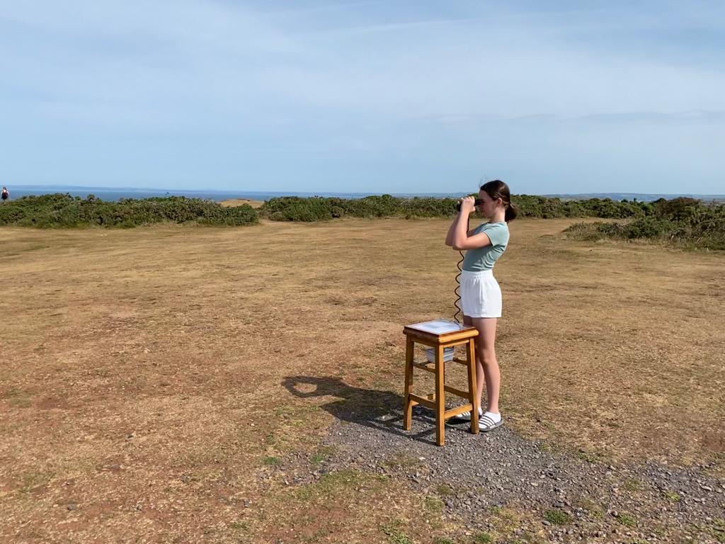 We reached the Coast Guards Hut and it said the causeway would be open from 1.25pm which was too late for us. It was lovely to see that the binoculars back out (when we visited last year they had been removed because of Covid). Izzy had a look through them and spotted a couple of people on Worm’s Head. We assumed they must have either sailed there or walked at the previous low tide to maybe do some fishing and return later.