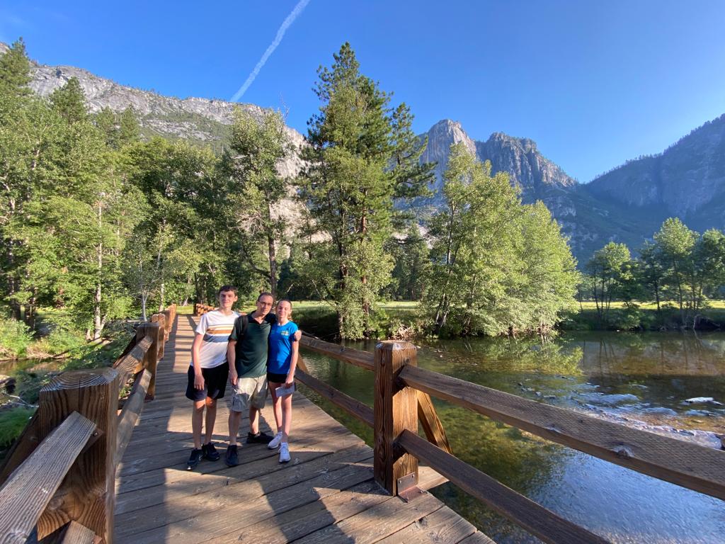 We then headed to Yosemite Falls which is just off the Valley Loop. We reached the viewing area and there wasn’t very much water in the falls and the river it went into was quite dry. This meant that you could climb over the huge boulders to get to the bottom of the waterfall. Tom, Izzy and Stu made it all the way but I gave up half way as found some of the rocks quite difficult to get over so stood by a rock watching the chipmunks play!