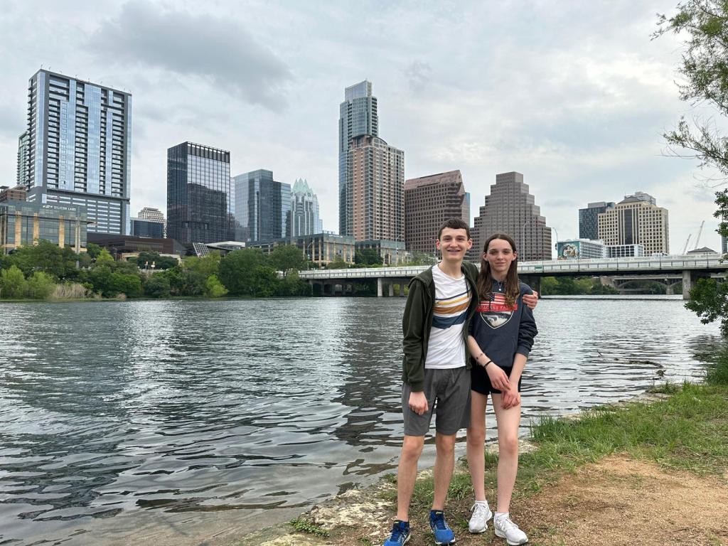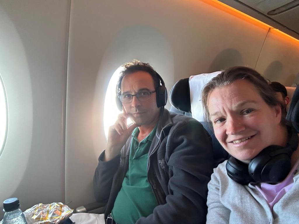We had a lunchtime flight out of Heathrow to Austin where we were spending the first two nights of our Texas road trip. We had decided to treat ourselves and fly premium as it wasn’t too much more expensive. It also meant we could have a 2-2 seating configuration so Tom & Iz sat in front of Stu & I.