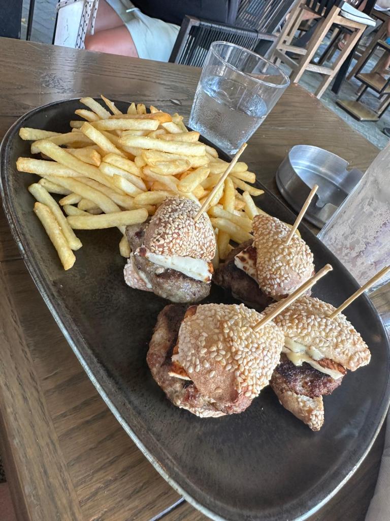 After the museum we went for a wander around Heraklion and found a restaurant for lunch. Izzy ordered boa buns, Tom chose mini beef sliders with feta cheese on them and I selected moussaka.