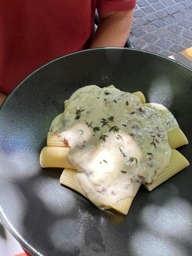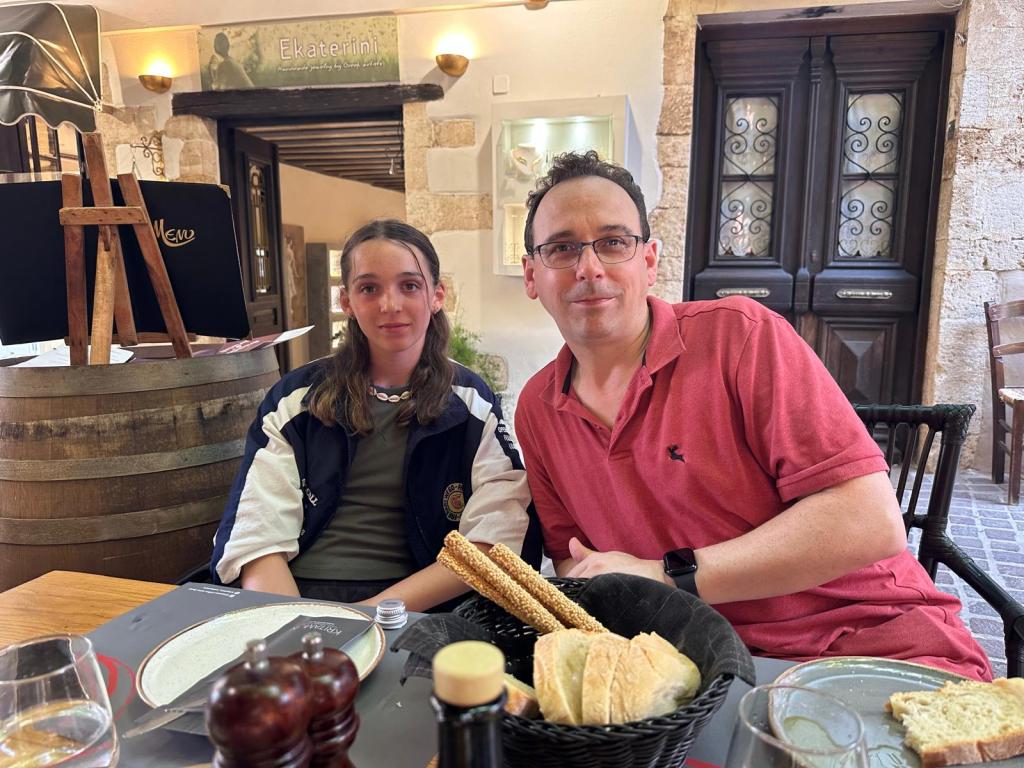 It was getting close to lunch time so we found a beautiful restaurant with outdoor seating before it got too busy. I ordered moussaka again, Izzy and Stu both selected pasta dishes and Tom opted for risotto.