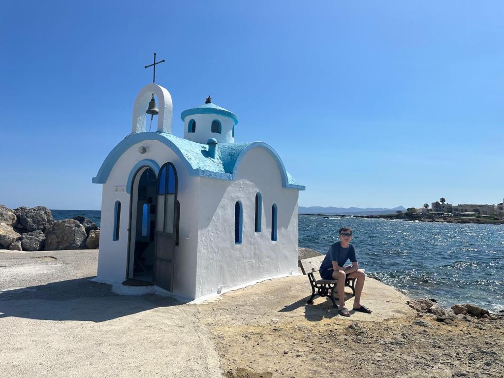 After having three very busy days visiting Knossos, Chania and Elafonissi we opted to have a day at home. However – there was a small chapel on the waterfront about a 20 minute walk from our villa that I wanted to visit – the Church of Agios Dionysios of Olymbos. Tom said that he would like to come with me so we walked to the church.