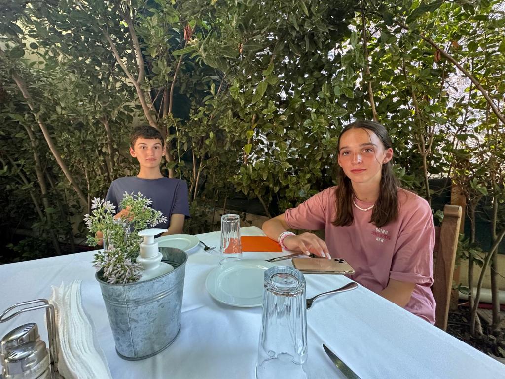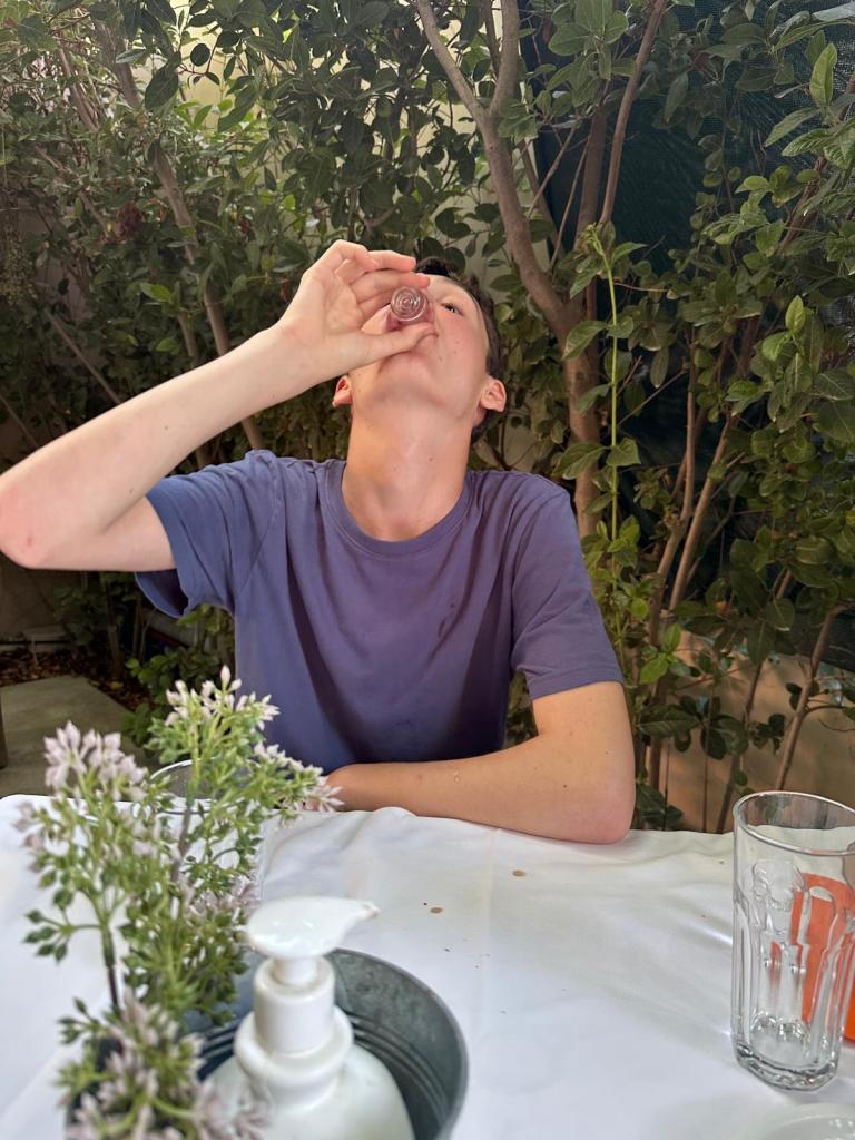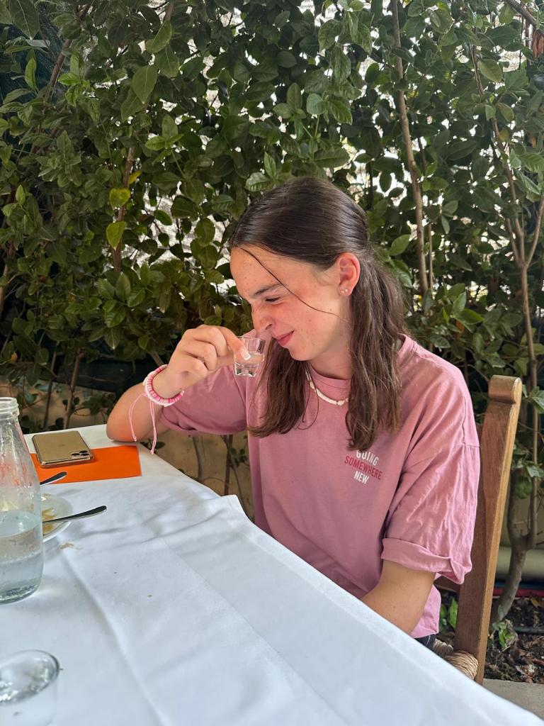 We then found a restaurant where I ordered lamb and both Tom & Izzy opted for chicken and chips! The restaurant gave us some raki – a cretan spirit which we all tried!