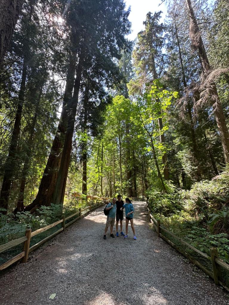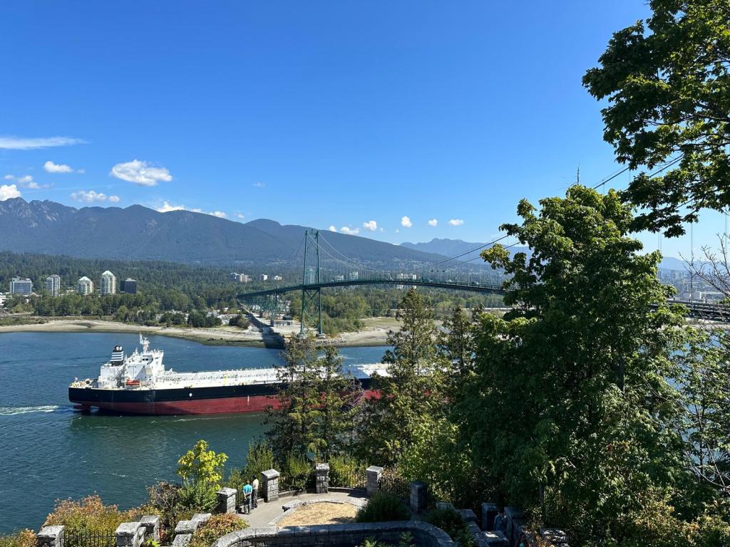 We then drove to the northern most point of the park – Prospect Point Lookout where we had views of the Lions Gate Bridge. We watched as a massive shipping container sailed under the bridge and tracked where it was from on marine traffic – it had sailed from California. Stu & I also walked to the viewing point of the bridge as we wanted to see who could take the best photo!