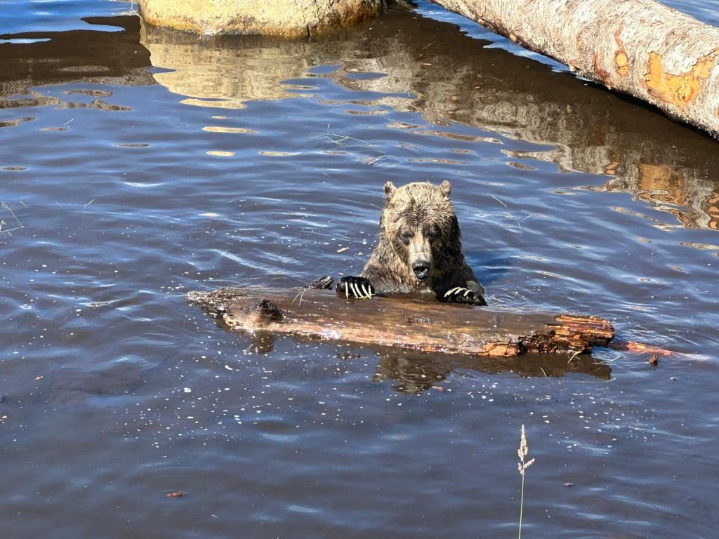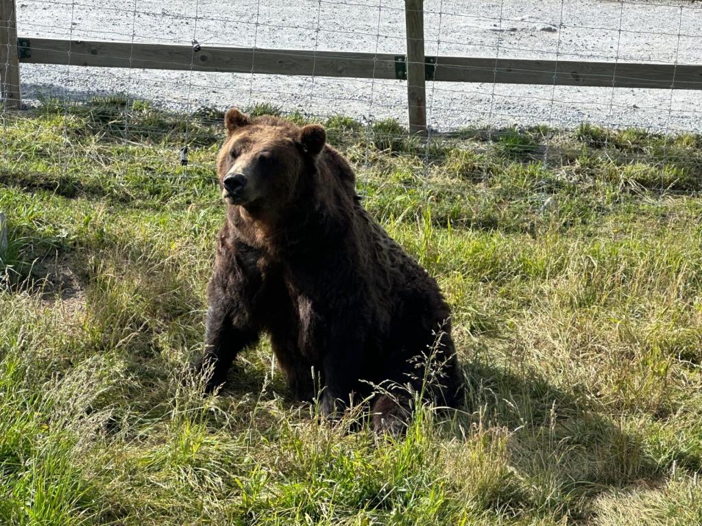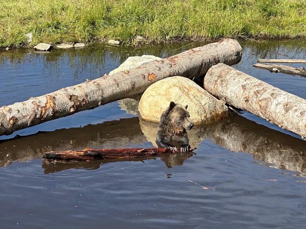 We arrived just before 10am and were straight on the gondola. Our first stop at the top was the grizzly bear enclosure which houses two male bears – Grinder and Cooler – who were both orphaned as babies. They were both outside so we spent quite a long time watching them play in the lake.