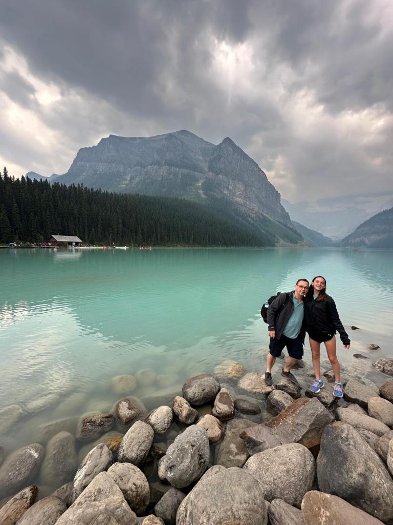 We boarded the first shuttle that arrived which drove us to Lake Louise. Lake Louise was much busier than Moraine but equally as beautiful.