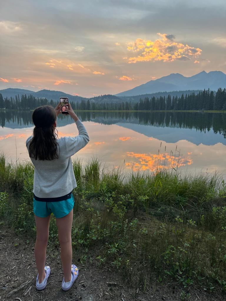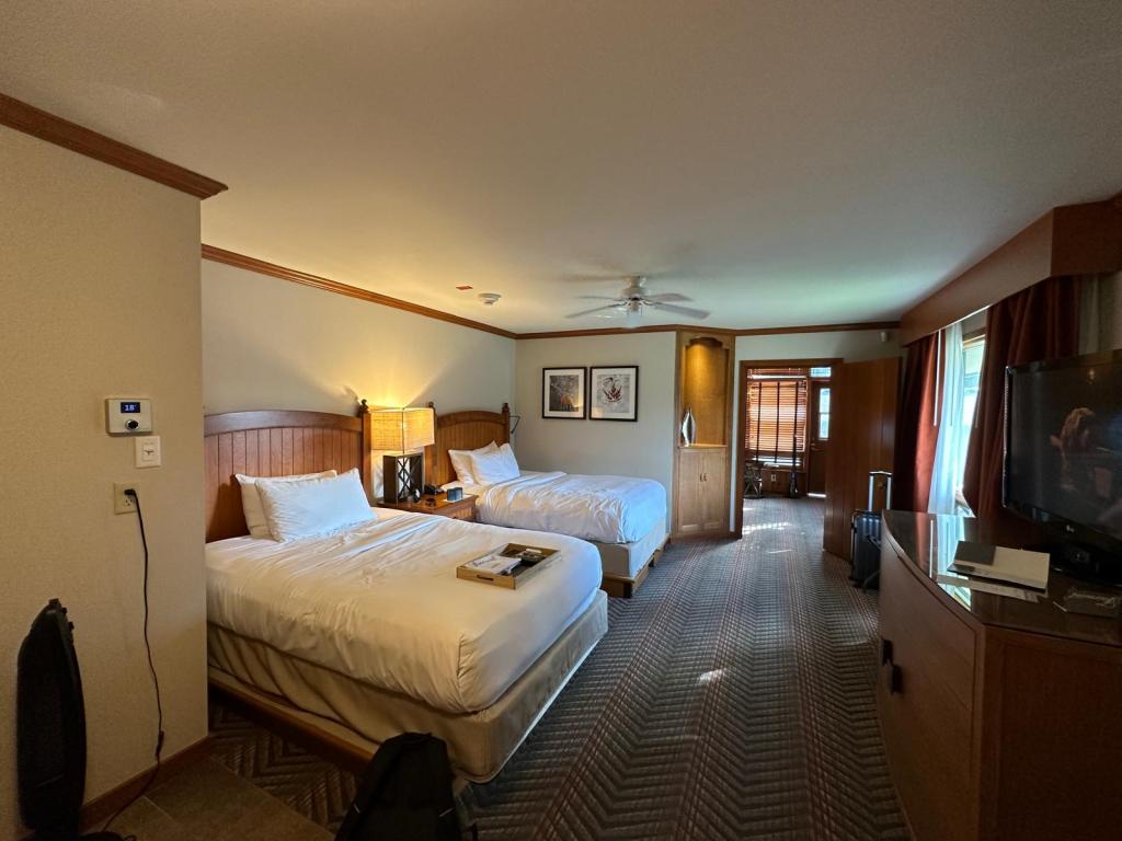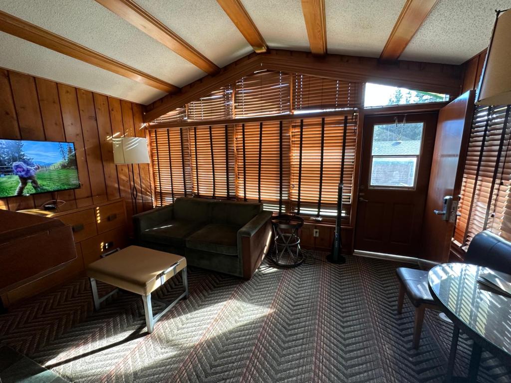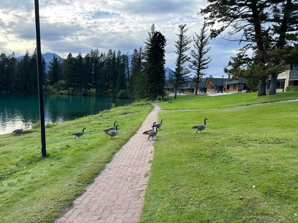 After driving the Icefields parkway and having pizza for tea in Jasper we were excited to check into our hotel for the next three nights – The Fairmont Jasper Park Lodge. As we drove up the drive it was set in the most amazing countryside with lots of greenery and a huge lake. We had booked a cabin with a separate lounge area and although it was lovely – for the cost of it we were a little disappointed.