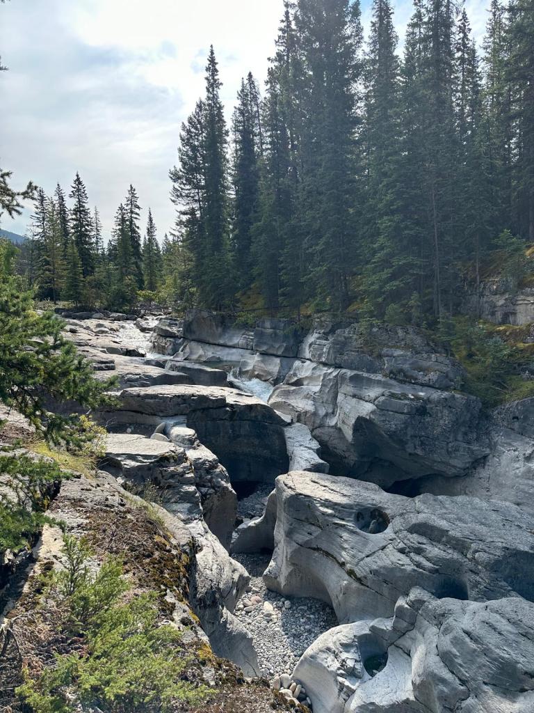 We were up quite early and headed out to Maligne Canyon which was only about ten minutes away. There were some walking routes and we followed the trail along the river which crossed various bridges and gave us views of some little waterfalls.