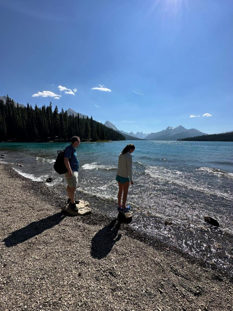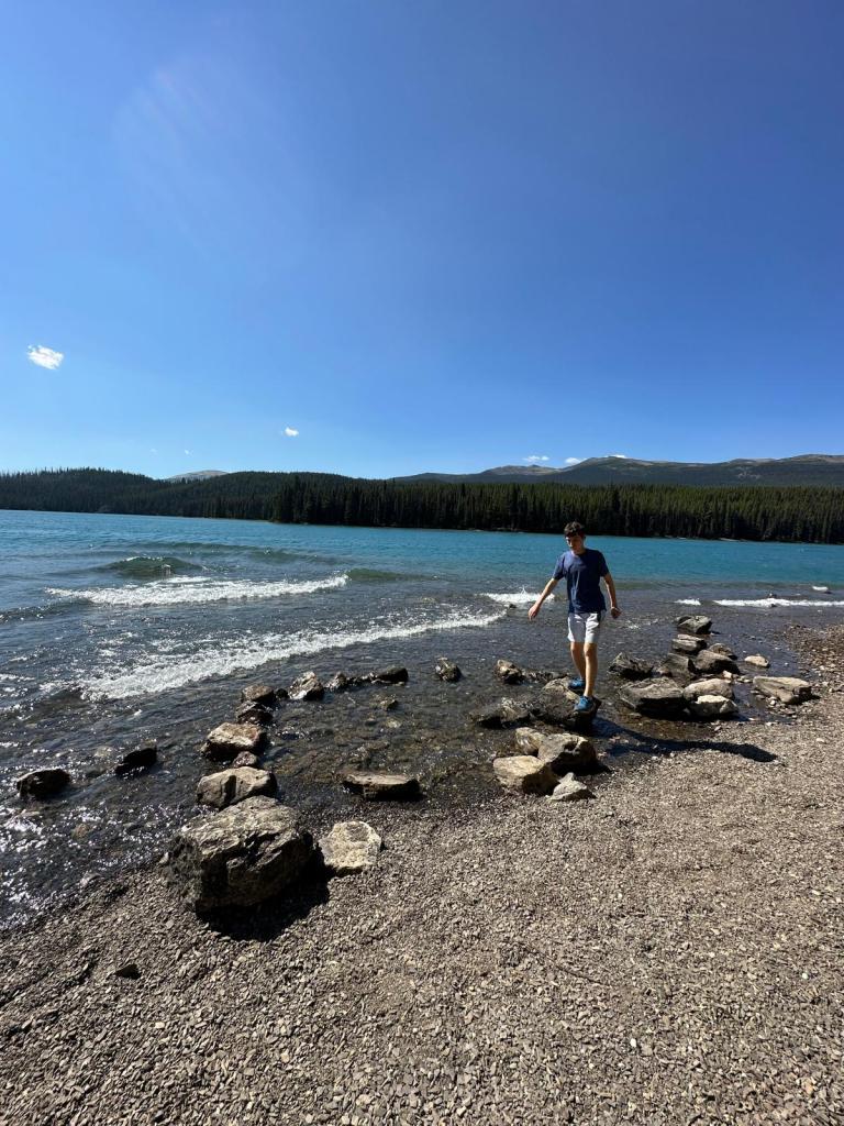 Our next stop was Maligne Lake (the largest lake in the Canadian Rockies) which was 45 minutes up the road driving through forests. As we drove we spotted a herd of mountain goats. It was also evident that a wild fire must have passed through a few years earlier as there were lots of dead trees.