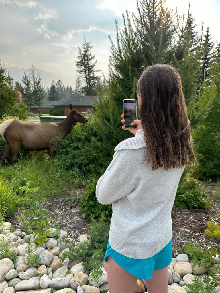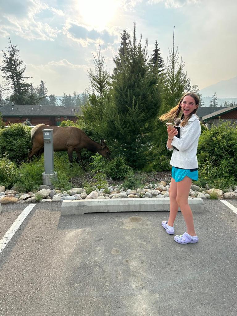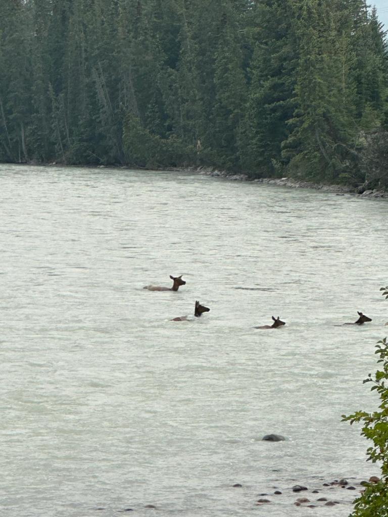 We decided to head out in the evening and see what wildlife we could spot. We began by picking up a KFC for tea and then drove to Pyramid Mountain as it was a popular place for wildlife watching. Unfortunately we didn’t see anything but as we were returning to the hotel we noticed a few cars pulled up on the side of the road. We joined them and wandered along the grass where we witnessed a herd of deer swimming across the river.