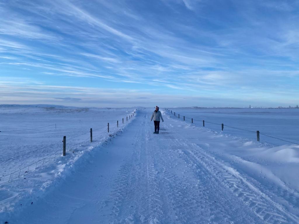 Our cabin was lovely – it had 3 bedrooms, an outdoor hot tub which was covered in snow and was so warm thanks to the geothermal heating! We went for an explore around the grounds as none of us had ever experienced this amount of snow – or the freezing temperatures!
