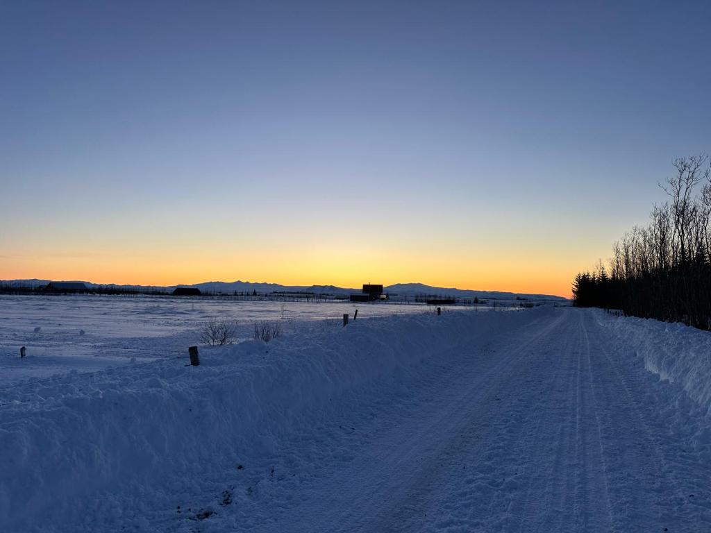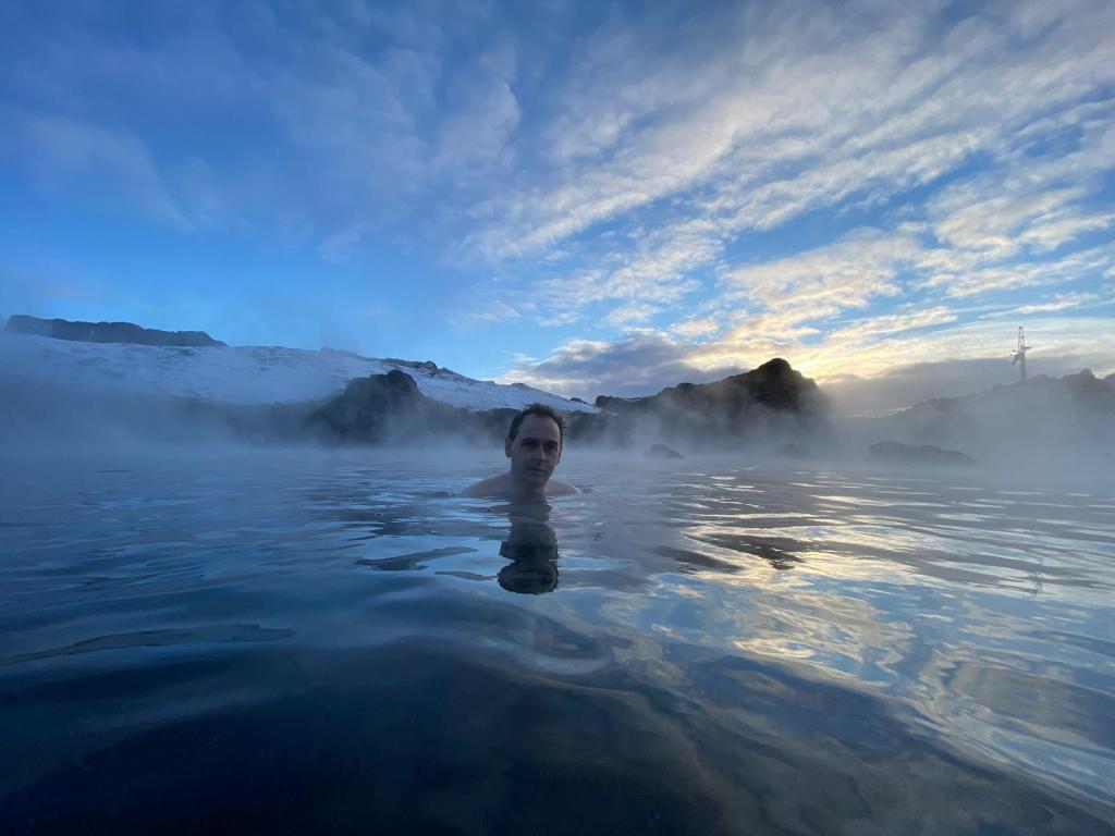 After having three days exploring outside in the cold we were looking forward to a morning at the Sky Lagoon. It was a 90 minute drive away from Hella so were up quite early and had another stunning sunrise!
