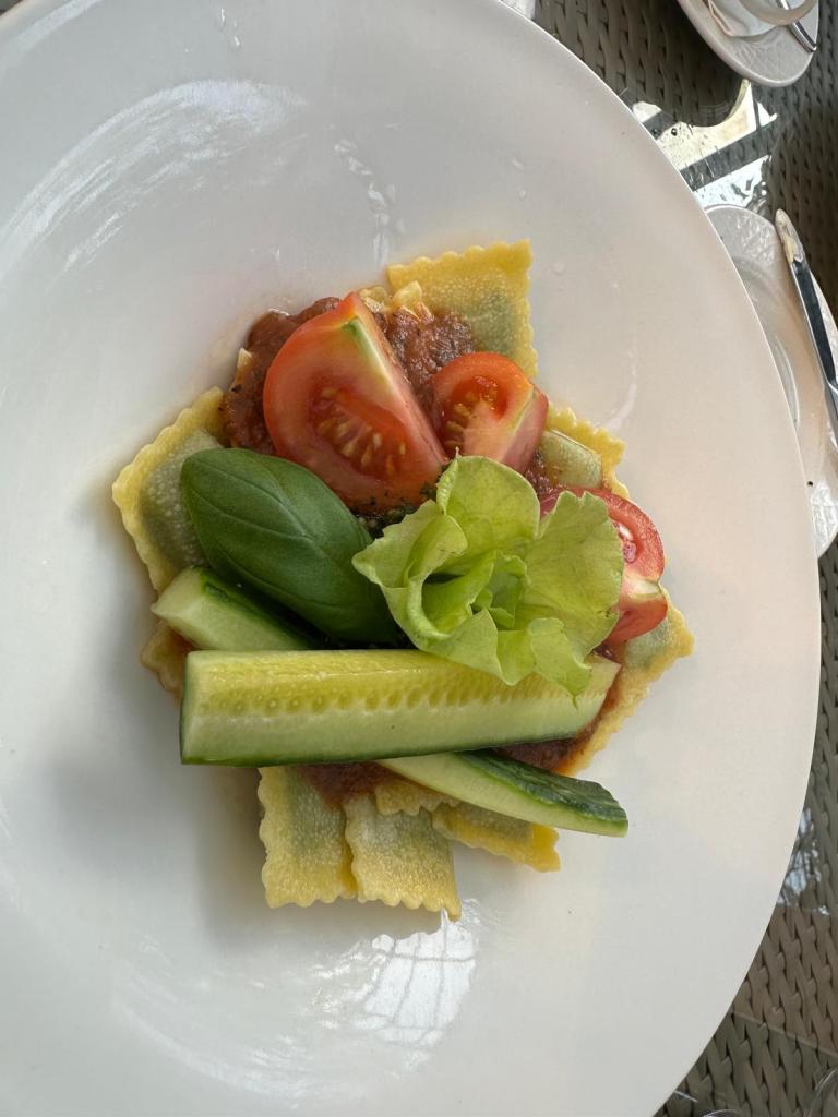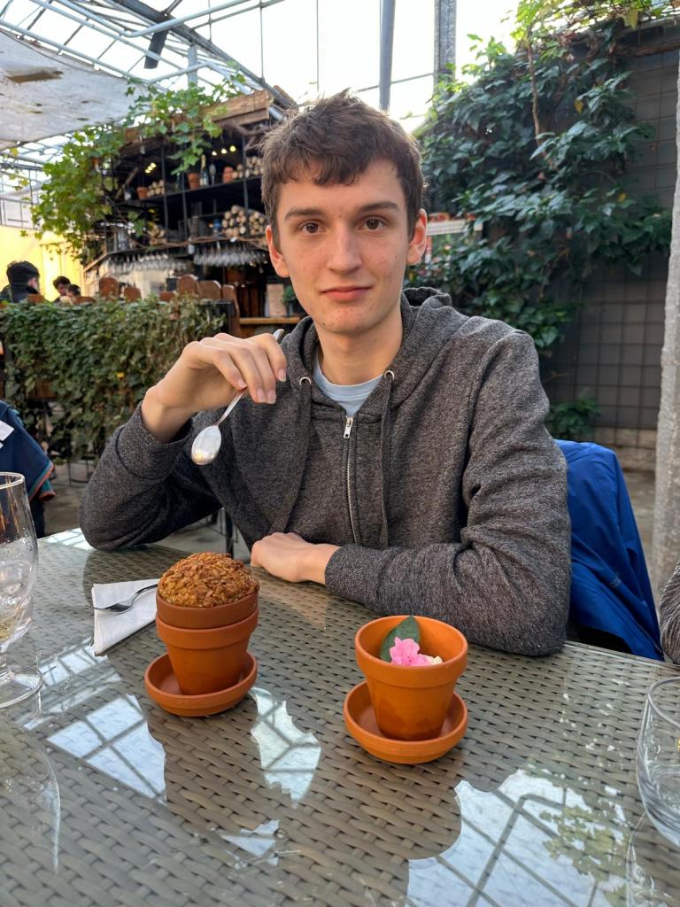 Stu, Tom & Izzy ordered the tomato soup whilst I opted for the tomato pasta. The food was really good. Tom then chose to have green tomato and apple pie for pudding which arrived in a very cute plant pot!