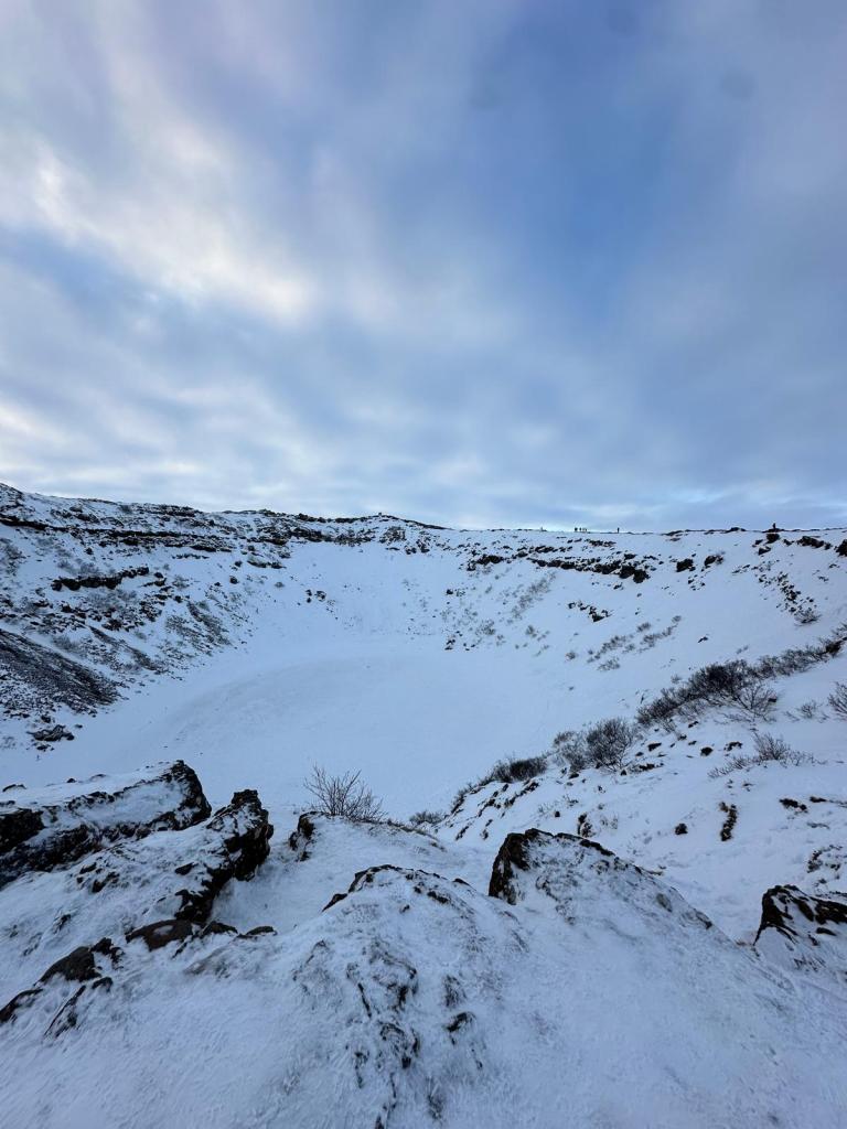 Our first stop of the day was Kerid Crater – mainly because Stu really wanted to visit again. Kerid crater is over 6500 years old and is over 50 meters deep. We had previously visited in the summer where we were able to walk to the bottom and have a picnic by the turquoise water – however, it was completely different covered in snow.