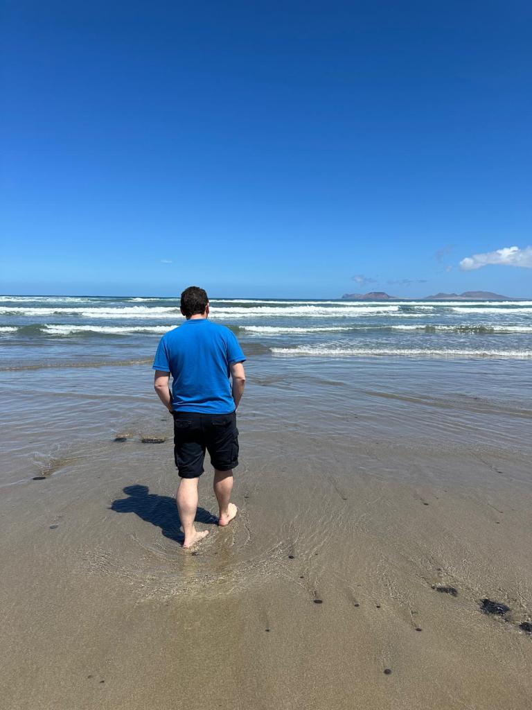 It was still quite early so we were not ready to return home so we headed north along the coast to Playa de Famara – a beach which was always highly recommended in any online Lanzarote guides. It was quite windy so there were loads of waves and people were surfing in the water. We went for a little paddle and then returned back to our villa to play in the pool.