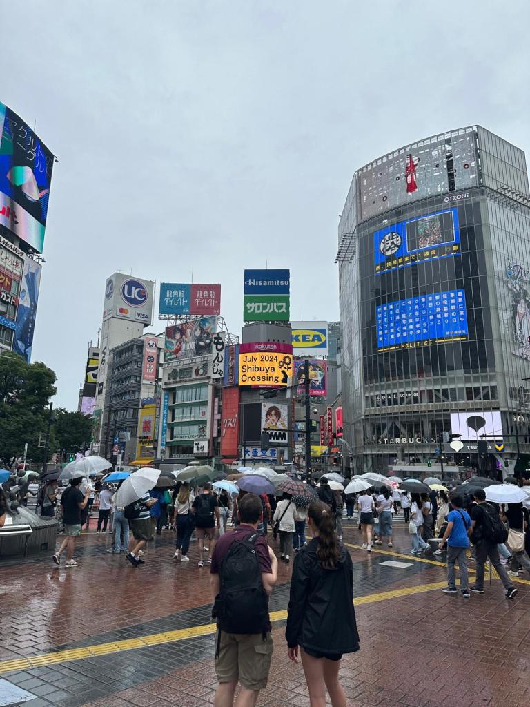 After a really good nights sleep (which was needed after a long travel day) we got up, had breakfast at the hotel (which was included) and took the train to Shibuya Crossing. It was a grey day and it was drizzling – but we had been told to expect a lot of rain in July! It was also very hot – in the mid 30’s!