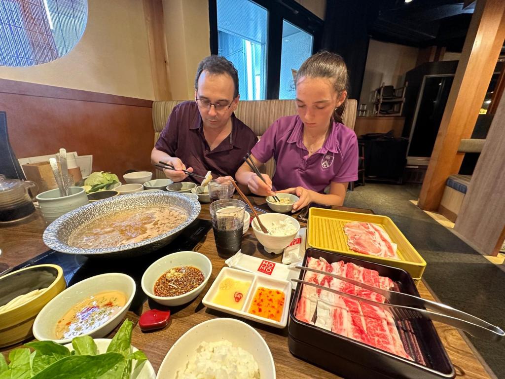 For lunch we wanted to eat ‘hot pot’ and I had already googled restaurants to visit.. We had selected Mo-Mo Paradise which was on the top floor of a shopping center. It was quite hard to find as it seemed to have its own escalator but so worth it when we did. We opted for the buffet so they bought us a selection of raw meats and we could help ourselves to noodles, vegetables and dipping sauces etc. The staff were lovely and explained to us how to cook with a hotpot – the meat should be cooked for about 5-10 seconds whilst some of the noodles and vegetables will take a few minutes. We also had ice cream for pudding. It was a lovely meal and not overly expensive,