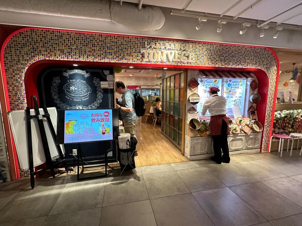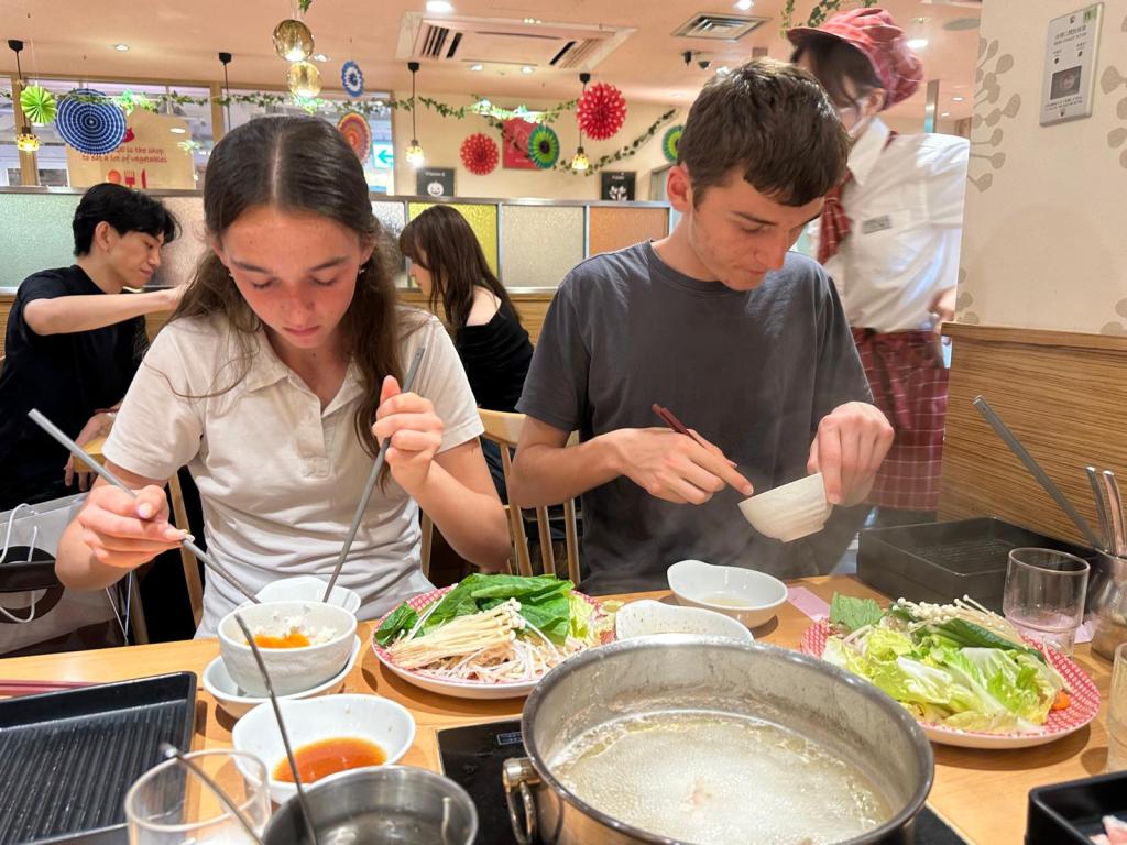 We wanted to visit Shinjuku as I wanted to see the 3D cat and Godzilla statue. When we arrived at Shinjuku Station it was well after lunchtime so we were all very hungry and Izzy found a great hotpot restaurant inside the station.